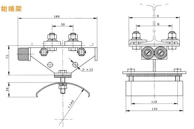 分為中載荷型、重載荷型、和輕載荷型,因此滑車走輪為Ф80、Ф63、Ф50的三種,承載能力≤50~150kg,每類按托板層數分為單層、雙層、三層,每類中有三種形式,首端為電纜牽引車,終端為固定掛線架,中間為電纜滑車。